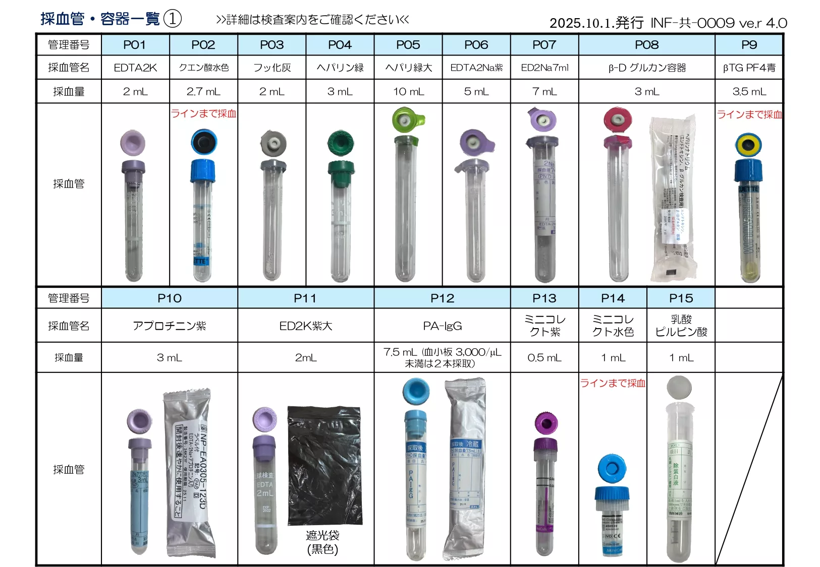 [INF-共-0009 ver 4. 採血管・容器一覧, 2025年10月1日改訂]
