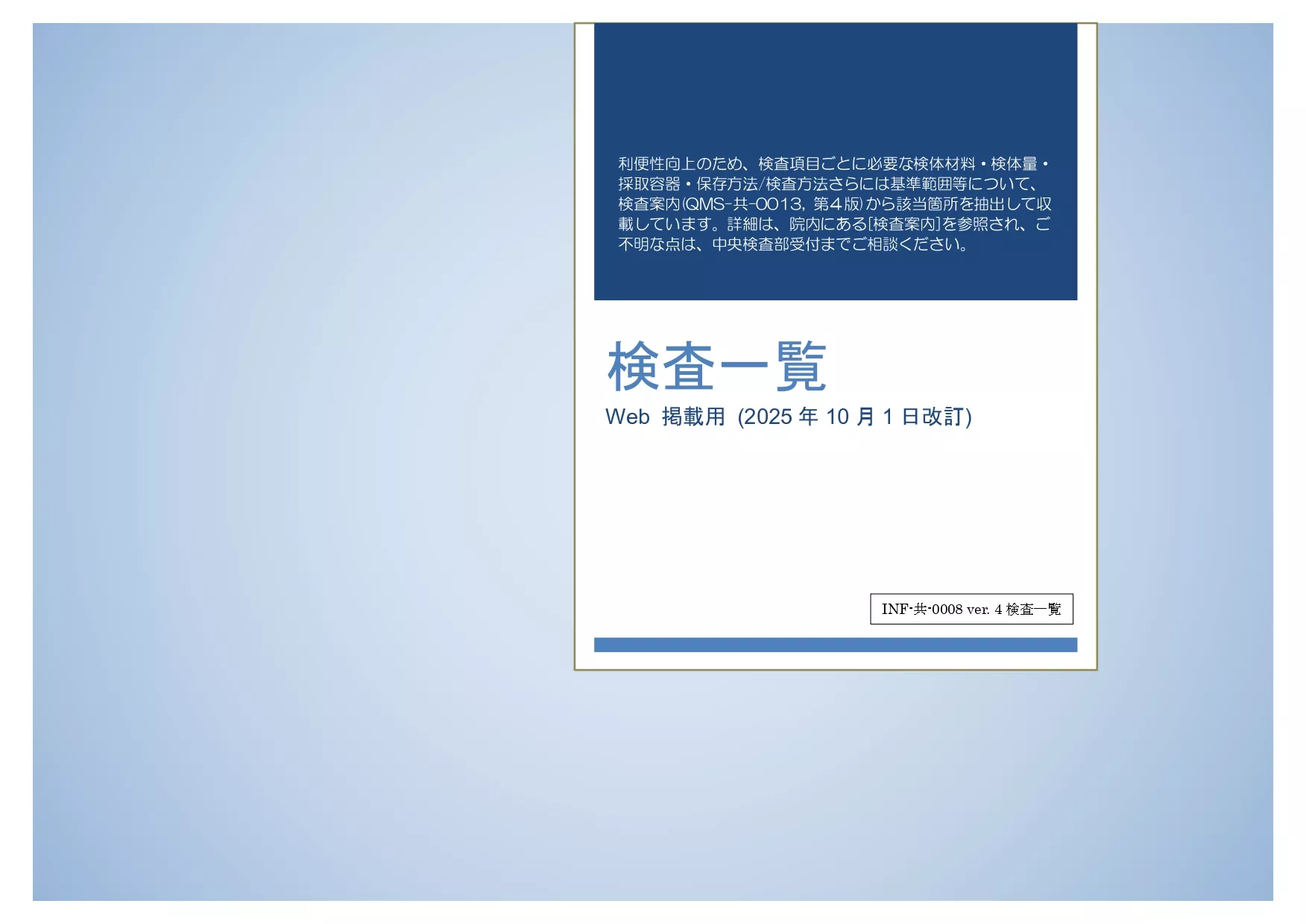 [INF-共-0008 ver 4. 検査一覧, 2025年10月1日改訂]